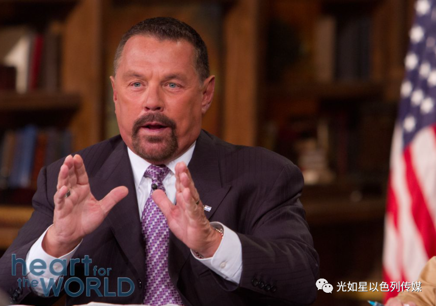 图:拉瑞·哈克牧师在电视节目上教导关爱以色列