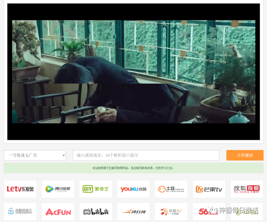 3、到下述解析站粘贴播放地址,点击立即播放,若播放不出请换接口;