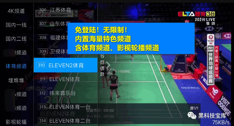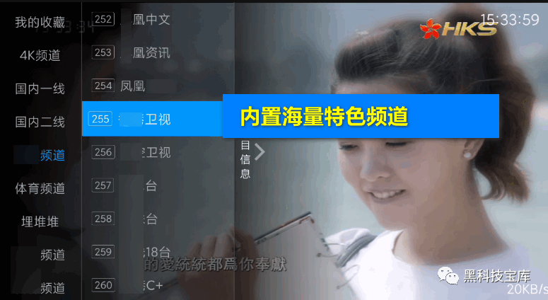 3、同时,还内置有海量特点频道,可以看海量两岸三地频道。