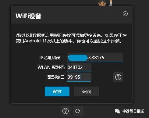 1.无线配对填写一次就成,下次链接戳一下那个连接按钮即可直接连接。前提是你手机里面的「无线配对」模式已开启,这跟手机连接电脑一个道理,不开启USB连接调试模式,连接个鸟!这里也一样,不开启「无线配对」模式,谁跟谁去连接!