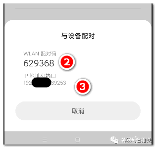 第三行是“使用配对码配对设备”里“P地址和端口”显示的后5位,也就是端口。
