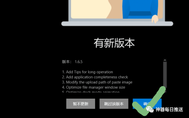 2、如果以后有新版本更新提示,选择确定更新即可,汉化文件是永久可用的。