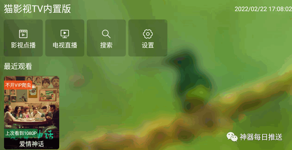 1、今天,「猫影视TV209」又发布了新版,新版更新到了2.0.9.20220305212712正式版。
