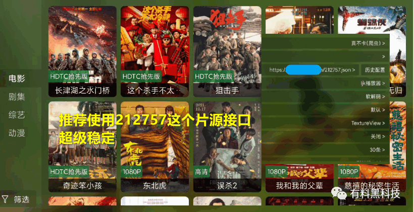 「212757」这个片源接口也不错,超级强大,内置有40余个优质影视片源,主要分以下几个类型: