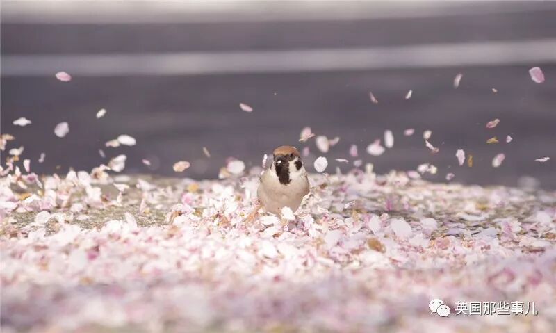 樱花飘落在地,小啾啾扑腾起一阵风后,落下了樱花雨。
