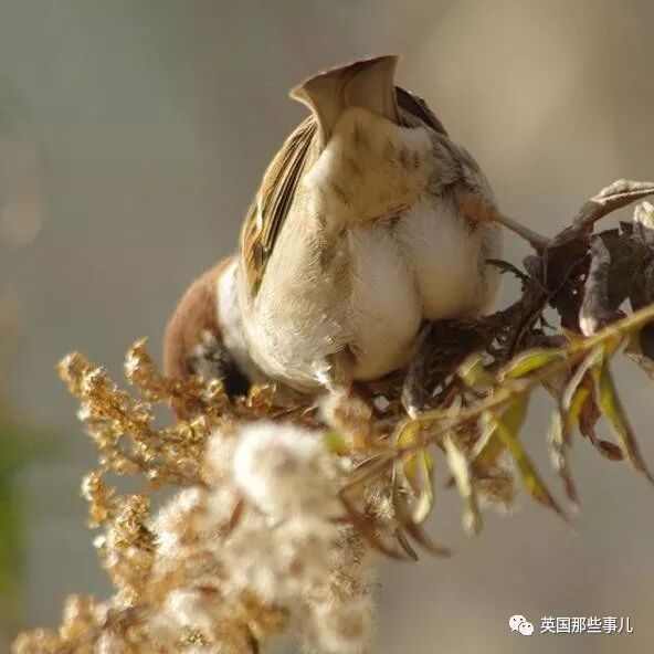 到了冬天,为了保暖,麻雀的羽毛就会膨胀,