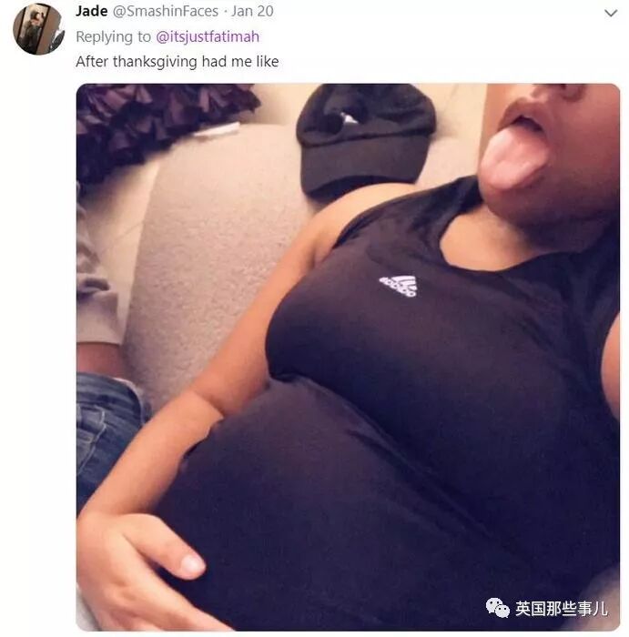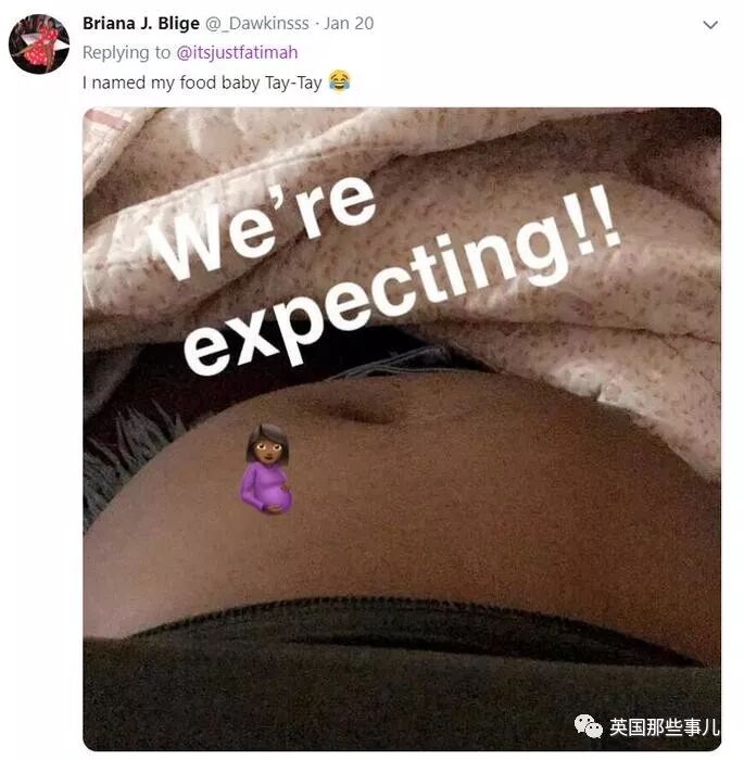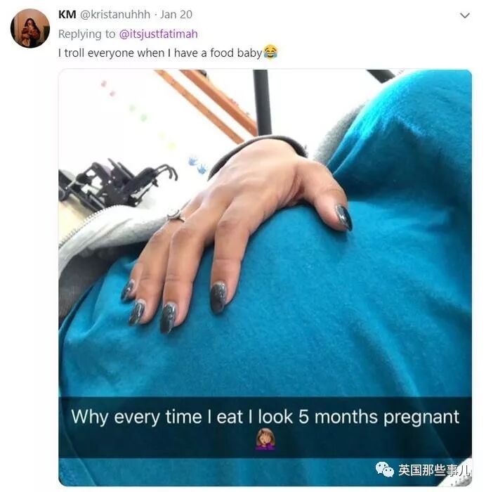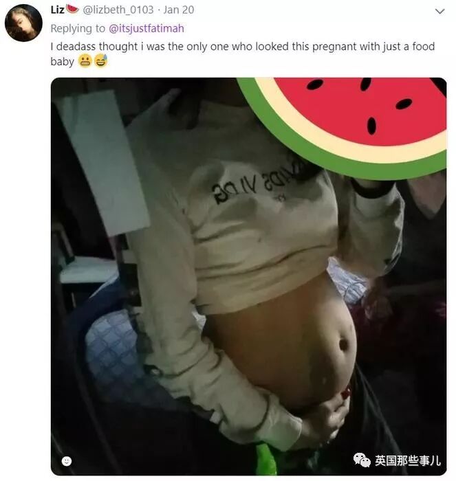 她在推特上写道:“我肯定不是一个人,每次吃撑了就想象自己怀孕了的人。”