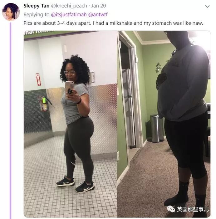 “两张照片相隔3、4天,我喝了一杯奶昔肚子就这样了。”