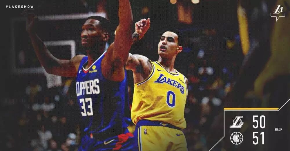 次节双方依旧是胶着异常,比斯利开局第一次单打便完成2+1,快船在经历几次打铁后由哈勒尔扣篮拿分。双方这一节开局依旧是交替得分谁都没能占得便宜,比斯利和麦基相继油漆区得分,回过头来哈里斯就是一记三分还以颜色。僵持阶段湖人曾短暂打出攻势,库兹马的三分和波普连续冲击篮下得分曾帮助湖人反超比分,但快船最后时刻找回感觉,哈勒尔和路威同样在篮下终结得分,快船凭借最后时刻连得7分的表现夺回领先,上半场战罢,快船51-50领先湖人。